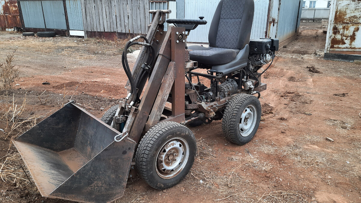 Всем привет дорогие друзья. Ну что, у меня свежие новости. Я продал свой первый мини погрузчик. Как я не хотел это делать но финансовые трудности, по русски сказать, меня дожали. Первый мой мини погрузчик получился довольно неплохим, а в чем то даже успешным. Так как у него была короткая колесная база, поэтому он оказался достаточно маневренным на малых участках земли. Руль оказался легким, в основном это заслуга рулевой рейки от Оки, поэтому работать на нем было одним удовольствием. Так же я для него приобрёл комплект противовесов что в будущем даст идеальную для него развесовку.