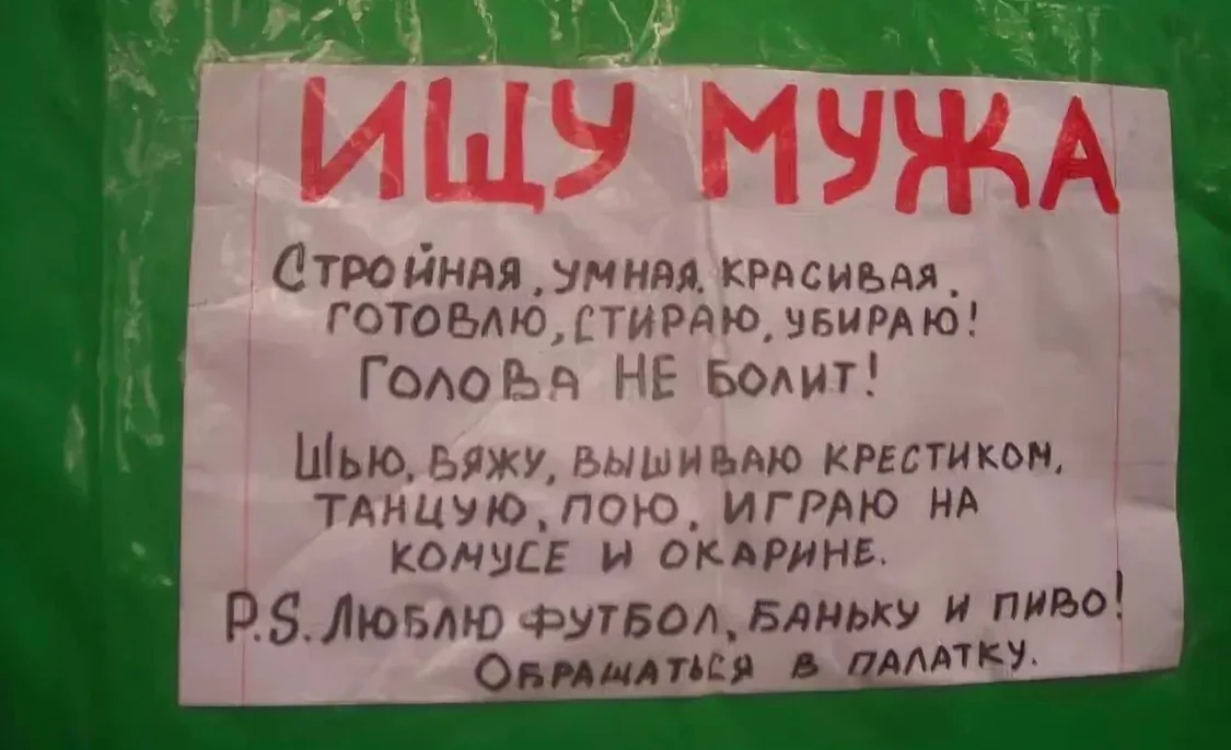 Моя школьная подруга Рита была девушка серьезная, ответственная, целеустремленная. В школе она прилежно училась, чтобы поступить в институт. В институте она так же прилежно училась, чтобы стать хорошим специалистом. Но к пятому курсу Рита обнаружила, что мало-мальски стоящих парней давно уже разобрали более расторопные девушки. Любителей выпить или погулять подруга не жаловала и на роль мужа не рассматривала. После института Рита устроилась на работу и решила вплотную заняться личной жизнью. В её конторе коллектив был женский, если не считать нескольких женатых мужчин в возрасте. Так что мужа следовало искать на стороне. Интернета в те времена не было, так что найти мужа или друзей можно было только при личном знакомстве. Рита была девушка красивая, неглупая, образованная, хозяйственная, с хорошим характером, так что трудностей в поисках мужа не видела. Подруга подошла к проблеме основательно. Для начала нарисовала словесный портрет претендента на руку и сердце. Список требов