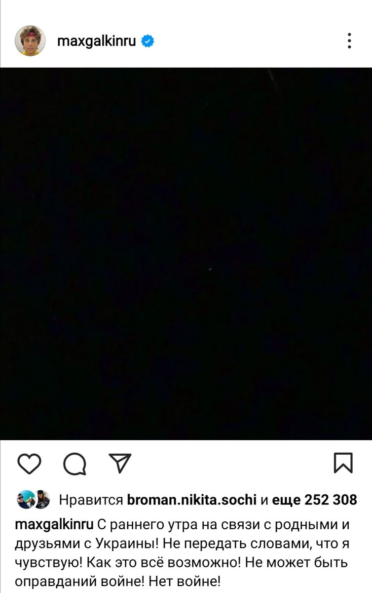 Вообще я смотрю иногда передачу с Ургантом. Выступления Галкина смотреть интересно, он действительно талантливый человек. Но почему они делают такие странные поступки? Взять опубликовать у себя на страничке черные квадраты с девизом "нет войне". Это я понимаю, война дело нехорошее. На мой взгляд, такую публикацию просто необходимо сопровождать пояснительной запиской . Ургант ничего не написал, осторожничает. Максим Галкин поставил пояснение о том, что “не может быть оправданий войне, нет войне“. Он написал, что беспокоится за своих родственников. Это мне понятно. Однако, у меня вопрос к этим уважаемым господам. А где Вы были эти восемь лет, когда ежедневно обстреливали мирных людей на Донбассе, убивали их, загоняли жить в подвалы, отлавливали и пытали? Тогда Вас это не беспокоило. Когда в Украине унижали ветеранов войны и возносили нацистов, Вы молчали. А сейчас, когда ситуация дошла до критически опасной точки и националистов буквально напичкали оружием, им не понравились военно техни