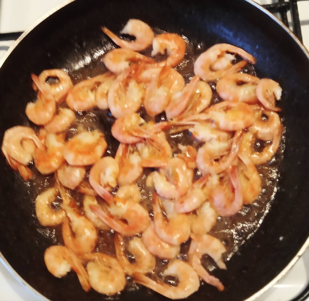 Моллюсков в моей семье не "жалуют". А вот креветки очень полюбились всем. Дорогие защитники (любимые, сыновья, братья)- с праздником вас! Здоровья и благополучия! #23февраля Ингредиенты: креветки, растительное масло, сливочное масло, чеснок, соль и перец, Сок 1/2 шт 🍋 лимона Способ приготовления: Креветки очистить (у меня были вареные и замороженные Полярные креветки). Промыть проточной водой. Панцирь и хвостик можно оставить - они очень полезны, много микроэлементов и кальция. Сковороду разогреть добавить смесь масел и обжарить чеснок, предварительно раздавить его ножом, обжаривать с кожурой (затем чеснок можно выбросить). В чесночное масло опускаем креветки и обжариваем несколько минут на максимальном огне, постоянно встряхивая или помешивая (креветки получаются глазированные!) Выкладывать на блюдо и полить соком половинки лимона. Едим, обмакивая в сырный соус. Приятного аппетита всем!