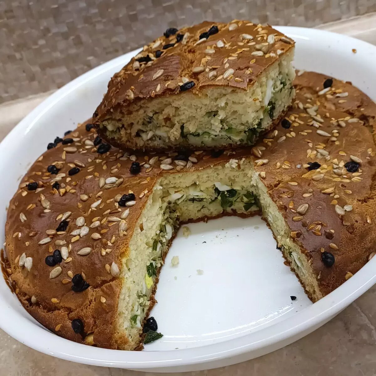 #заливнойпирог #пироги #пирожки Ингредиенты: кефира, яйца, растительного масла, соли, сахара, соды, муки, Начинка, яиц, Зелёный лук, сливочного масла растопить Способ приготовления: В тёплый кефир добавить соду, начнётся реакция, затем добавим яйца, соль и сахар, масло и в конце муку. Тесто должно быть как густая сметана. Сварить и нарезать яйца, лук и смешать с маслом. Часть теста вылить на дно формы, затем начинку распределить и залить оставшемся тестом. Посыпать семечками. Запекаем 30-40 мин при 170°. Приятно аппетита!!!