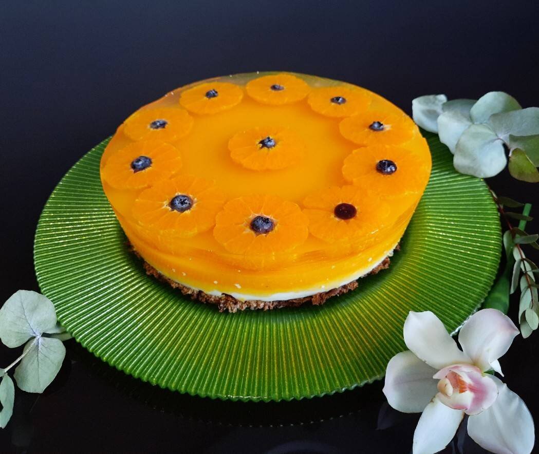 Мандариновый торт с бланманже на банановом бисквите