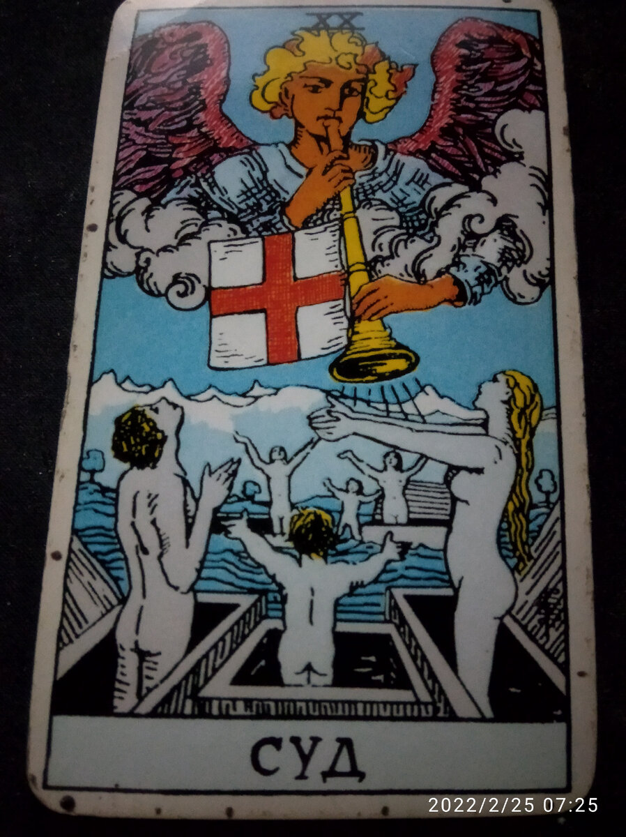 Сегодня выпала карта Судного дня. Значит пришло время писать отчёты вашему начальству и идти с явкой повинной к нему на ковёр. Возможно разбор вас ждёт не очень приятный но его не миновать. Вероятно пора принять важное и судьбаносное решение которое в корне может изменить всю вашу жизнь в семейной и личной сфере. Может быть вам предстоит важный и обстоятельный разговор который поставит последнюю точку в решении ваших проблем. Возможно что в этот день каждому придется отвечать перед богом за свои прошлые деяния , и каждый получит соответственно тому что он делал ,до настоящего времени. День сегодня возложит на вас очень большую ответственность которую не возможно будет снять или переложить на других.