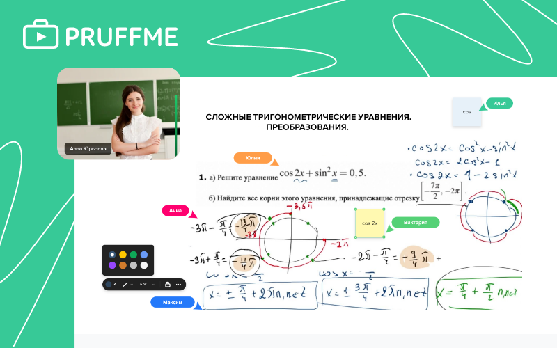 Что можно делать на интерактивной доске Pruffme во время онлайн-занятия.