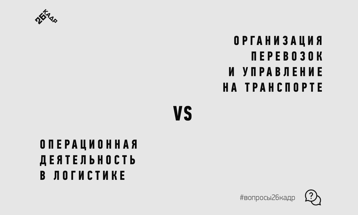 В колледже «26 КАДР» можно получить образование в сфере логистики и организации перевозок. Нас часто спрашивают, в чём отличия направлений «Организация перевозок и управление на транспорте» и «Операционная деятельность в логистике». Мы сравним эти два направления и поможем определиться с выбором. Эти программы обучения близки, они обе связаны с транспортной логистикой, однако между ними есть и различия. Организация перевозок и управление на транспорте – это специальность, связанная с организацией работы грузового транспорта. Тут Вы научитесь организовывать доставку грузов различными видами транспорта, рассчитывать эффективность перевозочного процесса, определять класс и степень опасности перевозимых грузов, а также сроки доставки грузов. Студенты изучают следующие дисциплины: Подробнее о направлении можно узнать на сайте 26kadr.ru Операционная деятельность в логистике – специальность, связанная с организацией и планированием бизнес-процессов. Таких как транспортировка, закупка, хранени