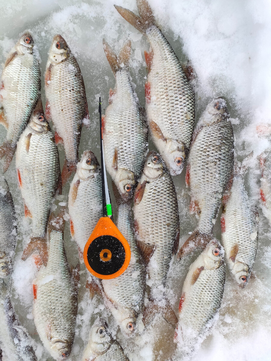 Мой опыт целенаправленной ловли плотвы на безмотылку на большой воде не так уж велик и составляет 6 лет. Под "большой водой" я понимаю водохранилища, такие как Истринское, Рузское, Озернинское, Яузское, а так же крупные озёра и карьеры. Особняком стоит ловля крупной плотвы (сороги) по последнему льду на Горе-море, но это уже совсем другая история. Для ловли я выбираю поливы- обширные участки водоёма с относительно ровным рельефом и небольшими перепадами глубины. Как правило, плотва придерживается глубин от 4 до 7 метров. Попадается плотва и на большей глубине, и около русловых бровок, но там, как правило, она уже конкурирует с подлещиком. В последнее время я ловлю с прикормкой. Закармливаю довольно большой участок полива до 200 метров в длину и до 100 в ширину, на котором делаю от 15 до 25 лунок, расстояние между лунками при этом довольно большое, 25-30 метров ,а иногда и больше (собственно, ничего нового я не изобрёл, так ловят наши друзья-спортсмены на любительских рыбалках, обя