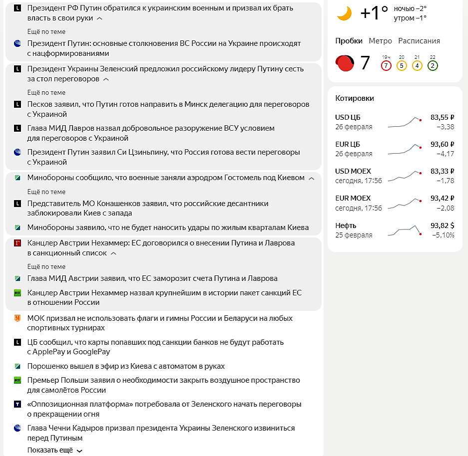 Я не знаю, как вести себя в чрезвычайных ситуациях. И то, что сейчас происходит в мире, меня реально пугает. Я за «женские» методы решения проблем и конфликтов. Иными словами, я за дипломатию и категорически против войны и агрессии в целом. Хотя, понимаю, что «мягко» и «тактично» далеко не всегда работает и требуется хороший такой кнут. От которого, правда, больше всего страдают обычные люди... Пока стояла в очереди в Сбер, чтобы снять с карты то немногое, что накопилось за последние пару лет (в ближайших банкоматах бабло закончилось ещё вчера), листала новостную ленту: И это ещё самое лайтовое... К счастью ли или нет, но наткнулась на мини-интервью с бывшим экстрасенсом Ельцина. По его мнению, то, что будет происходить в 2022 году (кровопролитные конфликты, катастрофы) — всё это закономерно и должно будет произойти. Ведь всё это — следствие научно-технического прогресса в совокупности с человеческим тщеславием, эгоизмом, жадностью и ложными целями, которые как раз и приводят к войнам,