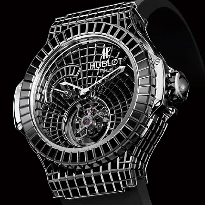 Мастерская Hublot и Bunter SA создали дизайн часов с черными бриллиантами со скрытой огранкой — такое решение придает модели исключительно загадочный и неповторимый внешний вид. Элементы корпуса BigBang варьируют от округлых линий до острых углов. Граней на часах почти не видно — белое золото усеяно бриллиантами с секретной обработкой. Стоимость часов оценивается в $ 1 миллион, делая их по-настоящему достойным произведением искусства.