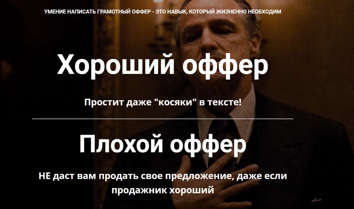 Оффер — торговое предложение, в котором описаны все преимущества продукта и выгоды, которые получит покупатель. На нем строится весь маркетинг. Если предложение грамотное, то ему нельзя ответить отказом. Это — фишка сильного оффера.