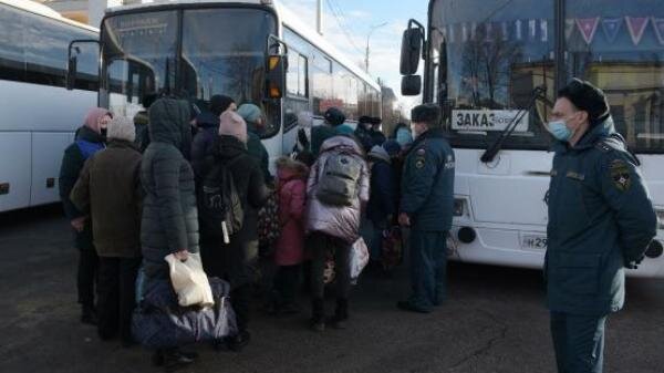 Беженцев перевозят от пограничных пунктов до пунктов временного размещения и в города и районы других регионов.