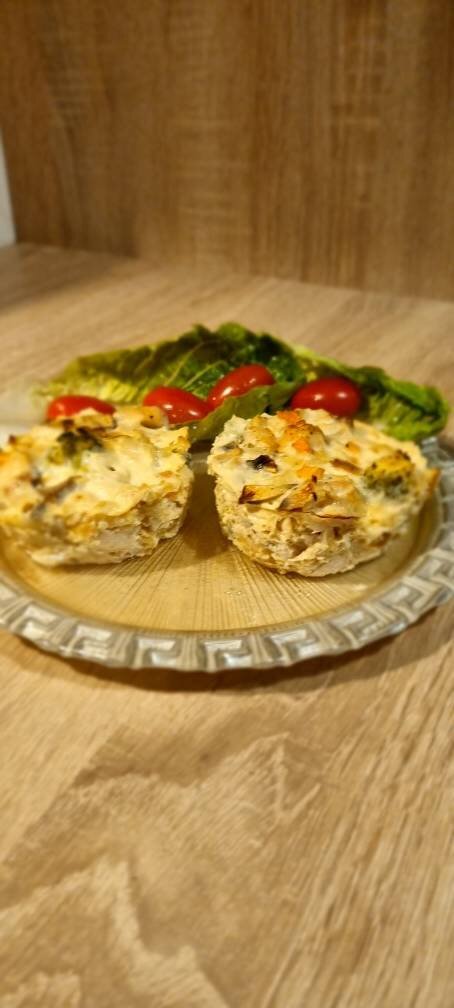Маффины любимое блюдо нашей семьи, и сладкие и сырные и овощные готовятся легко и быстро, куриные получаются лёгкие можно и на обед и на ужин. Ингредиенты: куриного филе, луковица маленькая, морковь маленькая, брокколи, грибов, сыра, яйца, йогурта натурального, соль, специи Способ приготовления: Куриное филе режем небольшими квадратиками. Затем нарезаем мелко лук, морковь и грибы. Брокколи обдаём кипятком. Соединяем овощи с филе, вбиваем яйца, йогурт и сыр, всё перемешиваем, солим по вкусу. Формочки смазываем маслом, выкладываем смесь и ставим на 40 минут в духовку выпекать, когда маффины будут золотистого цвета выключаем духовку.