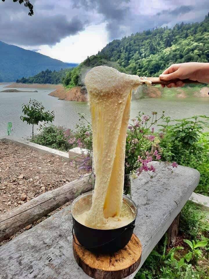 Эларджи (от грз. ელარჯი) – настоящий шедевр мегрельской кухни, который состоит всего из трех ингредиентов – белой кукурузы, воды и сулугуни (сыра). Можно сказать, мамалыга с сыром. Эларджи Грузинское национальное блюдо, вкусная и очень сытная. Традиционно кукурузная каша варится на воде, в равных долях круп и сыра. Для 3 порций эларджи понадобится: - 1 кг белой кукурузной крупы - 200 г белой кукурузной муки - 1,5 кг сыр сулгуни Приготовление: Готовим как мамалигу. Берем кукурузную крупу и тщательно моем под проточную воду. Промытую крупу варим до загустения, потом постепенно добавляем муку. Постепенно перемешиваем деревянной лопаткой (чогани). В самегрело чоган есть на каждой кухне. Через 7-10 минут добавляем мелко нарезаний сыр сулугуни. Постепенно перемешивая доводим до однородной массы. Эларджи томится 20-25 минут, после выкладывается на тарелку. Эларджи едят горячим, тянущееся вкуснятину можно есть но переусердствовать не стоит.