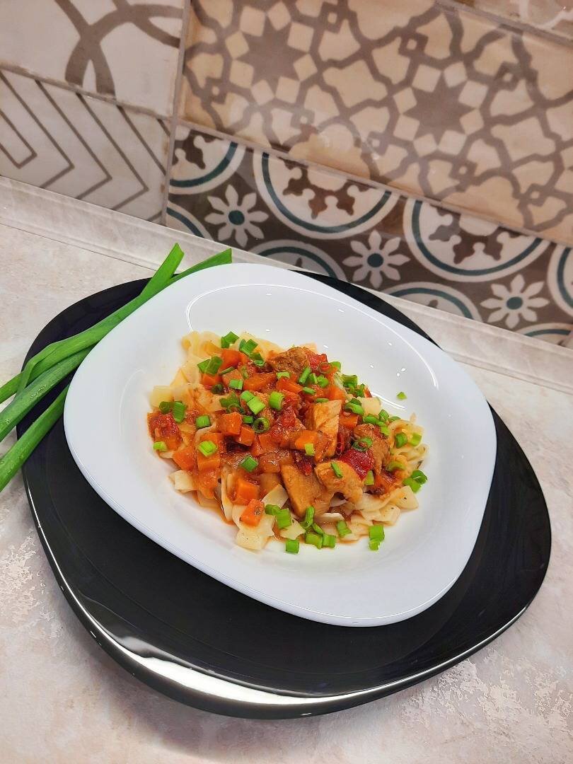 У каждого народа свой особенный рецепт лагмана. Я хочу поделиться своим рецептом, который я нашла и вот уже не первый раз по нему готовлю. 😊 Ингредиенты: Лапша для лагмана, Мясо, Лук, Чеснок, Морковь, Сладкий перец, Томатная паста, Специи Способ приготовления: Мясо нарезаем на небольшие кусочки. Обжариваем вместе с овощами и тушим 30 мин. Добавляем томатную пасту и тушим ещё 15 мин. Пока мясо тушится, готовим лапшу. Лагман готов, соединяем мясо с лапшой и сверху можно посыпать зеленью. 🌿
