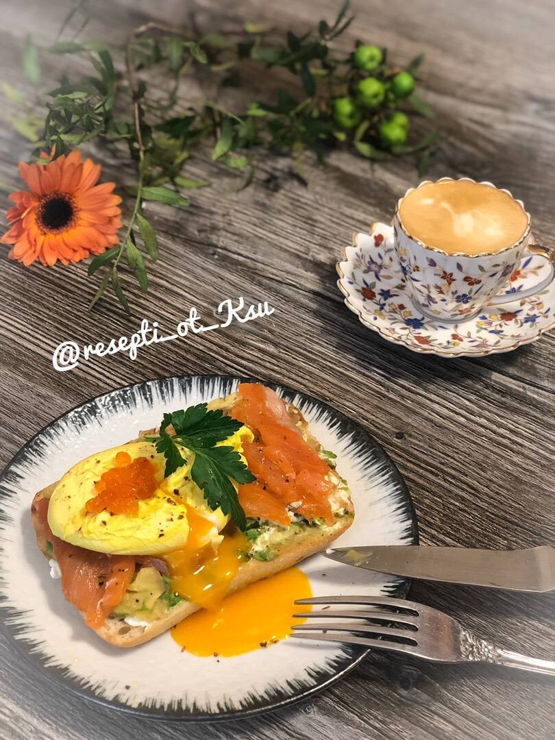 Быстрый и вкусный завтрак!❤️Сегодня провела эксперимент в воду для яйцо пашот добавила куркумы и вот результат , как Вам? 😉 #23февраля Ингредиенты: часть Чиабатта с оливками, гр Творожного сыра, часть авокадо, ломтика красной рыбки, Для яйцо пашот, Воды, Соли, ст.л Уксус, ч. л Куркума, яйцо С 1, Для подачи, Зелень, Красная икра Способ приготовления: Готовим яйцо-пашот: яйцо разбиваем в небольшую емкость, так будет удобнее опускать его в воду. В сотейнике кипятим воду, затем уменьшаем огонь до среднего, чтобы не было бурного кипения, добавляем соль, уксус и куркуму, венчиком размешиваем воду в сотейнике, чтобы образовался водоворот и сразу опускаем яйцо, при этом ёмкость с яйцом держим, как можно ближе к воде. Варим пашот 2-3.5 минуты и вынимаем из воды шумовкой и выкладываем(вместе с шумовкой) на бумажное полотенце, чтобы стекла вода. Готово! Чиабатту разрезаем пополам и обжариваем в мультипекаре на панели «гриль», затем смазываем творожным сыром, выкладываем авокадо и разминаем вилко