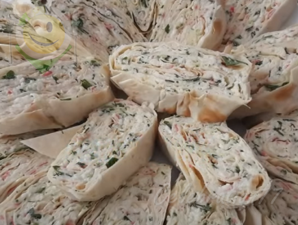 Рулет из лаваша – наверное один из самых популярных видов закуски. Вариаций начинки для нее существует великое множество: с красной рыбой, с зеленью, с курицей, со шпротами, с ветчиной и т.д и т.п. Эта закуска особо актуальна в сезон пикников либо праздников и отличная альтернатива бутербродам. Сегодня я предлагаю приготовить, на мой взгляд, самый простой и самый вкусный вариант этого рулета. Основной и важный плюс - готовится он очень быстро. Ингредиенты: Лаваш тонкий Крабовые палочки............ 100 гр Яйцо вареное .........................2 шт Сыр ..........................................50 гр Чеснок ................................2-3 зуб Зелень пару веточек Майонез Приготовление: Крабовые палочки трем на мелкой тёрке. Так же натираем яйца И сыр Зелень измельчаем. Все ингредиенты складываем в миску добавляем майонез, чеснок пропущенный через пресс, перемешиваем. Полученной массой смазываем весь лист лаваша. Сворачиваем в рулет. Для удобства разрезаем пополам и заворачиваем пищевой