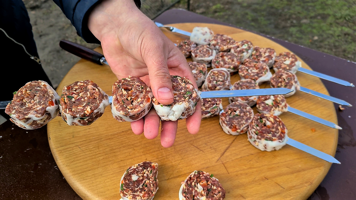 Всем нам иногда хочется побаловать себя и близких, каким-нибудь интересным блюдом. Сегодня приготовил "роллы" с говядиной по кавказски. ))) Рассказываю рецепт. Список продуктов как всегда в конце статьи. В говяжий фарш добавляю любимые специи и соль. Затем измельчаю болгарский перец, лук, зелень и на крупной терке тру сыр. Всё это отправляю в фарш. Фарш тщательно вымешиваю и оставляю промариноваться на 20 минут. Далее понадобится жировая сетка. Её всегда можно найти у мясников на рынке. Фарш тонким слоем распределяю по поверхности сетки, после чего скручиваю его в рулет. Нарезаю рулет на порционные куски. И нанизываю кусочки на шампуры. Время приготовления на мангале, как и у обычных люля-кебаб. 5-6 минут на первом сильном жаре. Главное почаще переворачивать. Блюдо получается, ну очень вкусное, нежное и сочное. Обязательно попробуйте этот рецепт! В видео ниже👇 я подробно показал весь процесс. Всем хорошего настроения и приятного просмотра, друзья! Спасибо за ваши лайки 👍 Не забудьте