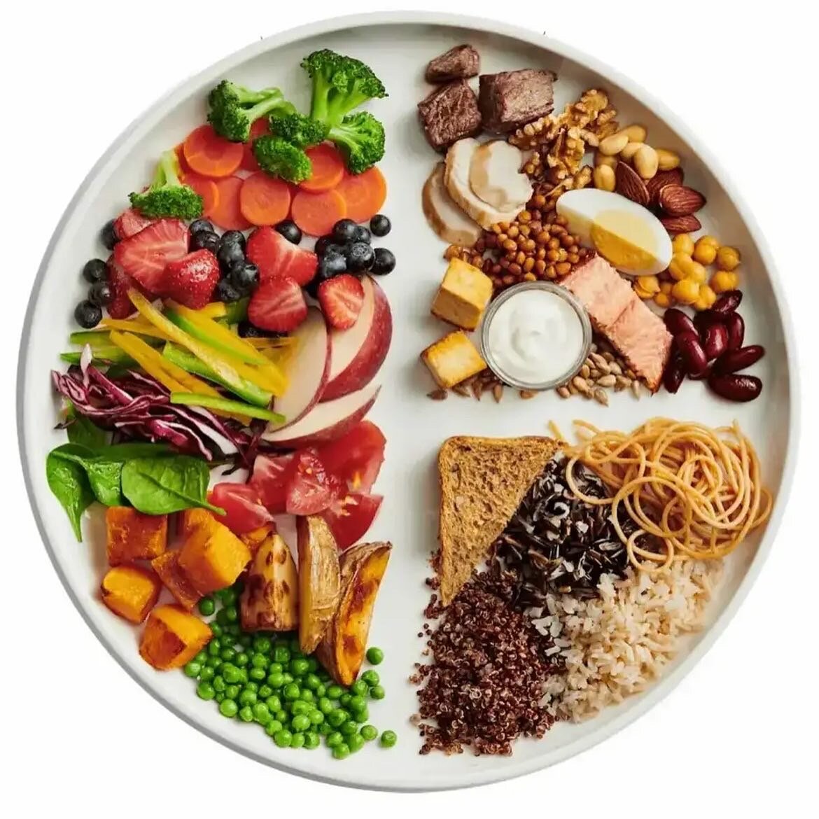 Беспроигрышный инструмент контроля над своей тарелкой, который приведёт тебя к сбалансированному питанию Все современные рекомендации строятся на основе науки - на основе схематической тарелке #My_plate 🍽 Ее смысл заключается в следующем: 🥬1. овощи и фрукты должны составлять основную часть вашего приема пищи - а это 1/2 вашей тарелки! Обеспечьте разнообразие цвета и вида. Кстати, картофель не считается овощем Здоровой тарелки из-за его негативного воздействия на уровень сахара в крови. 🍞2. Отдавайте предпочтение цельнозерновым - 1/4 тарелки. Это цельная пшеница, ячмень, киноа, цельная овсянка, гречка, неочищенный рис, продукты, изготовленные из цельных зёрен: макароны и хлеб. 🍗3. Здоровой белок - 1/4 тарелки. Рыба, курица, фасоль, орехи - здоровые и разнообразные источники белка. При этом нужно ограничить употребление ковочного мяса и избегать потребление переработанного (сосиски, колбаски и т.п.). 🫒 4. Масла. Полезные растительные масла в умеренном количестве: оливковое,