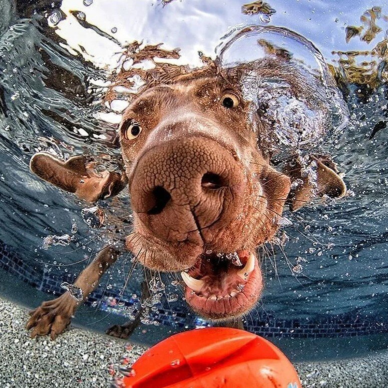 Ну, а этот крупный и очень добродушный пес, которого также называют водолаз, также отличный пловец и тем более ныряльщик. Ведь такая собака просто создана для того, чтобы плавать и получать от этого максимум кайфа и удовольствия.