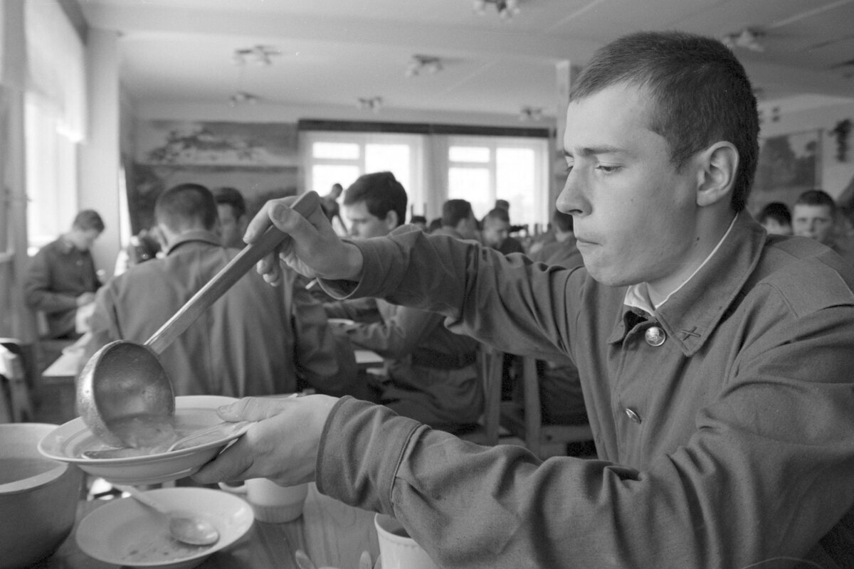 1. Сергей Блинов вспомнил: "Первое знакомство с солдатской столовой - это Омская пересылка, т.е.16 Военный городок, точнее КЭЧ, где я пробыл три дня перед отправкой в ГСВГ. Там нас переодели в военку ( ремни правда не дали). Так как часть находилась в оживлённой части города, а я омич, то столовались мы со знакомыми призванными пацанами через дырку в заборе в гастрономе через дорогу от части (обедали всегда с портвейном ). В последний день перед отправкой деньги на портвейн и закусь неожиданно закончились и пришлось посетить столовую ( опоздали и пошли без строя ). Первое впечатление - заходим мы три человека и видим за первым столом сидит дембель по виду… Лохматый небрежный и ушитый до невозможности и говорит философски поваренку азиатской национальности - "Достала столовая, суп-капуста, второе - капуста, беру компот - и там капуста плавает. Ржали до слёз…» 2. Добряк поделился: "В учебке тяжко было в наряде по столовой - больше 1000 воинов, блин. В вонючей подменке и пашешь как раб