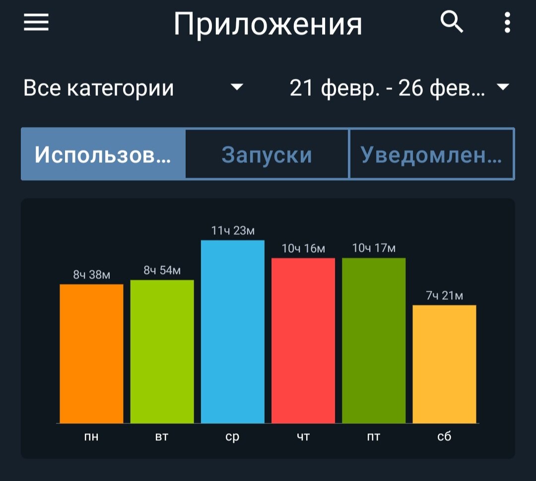 Привет, хочу рассказать про то, как я решился отказаться от социальных сетей на 7 дней. Недавно я скачал приложение, которое показывает сколько времени я провожу в телефоне. На самом деле я удивился и не понимал, куда трачу столько времени с телефоном. Тут-то я и решил проверить как изменится моя жизнь, если я буду проводить меньше времени в социальных сетях. На тик ток, вк, инстаграм я поставил ограничение по времени - 30 минут. Когда истекает время - приложение можно открыть только на следующий день. Первый день эксперимента: Я ощущал себя очень некомфортно. Заходил в эти приложения по несколько раз в день, но они просто были заблокированы, так как лимит времени был истрачен. Я не знал чем занять себя и начал заниматься тем, чем давно хотел заняться. Был очень странный день, время текло жутко медленно. Когда день закончился, я был очень рад и с удовольствием уснул. Второй-пятый день: В эти дни я более-менее привык к такому раскладу дня. Свободное время я тратил на развитие, а та