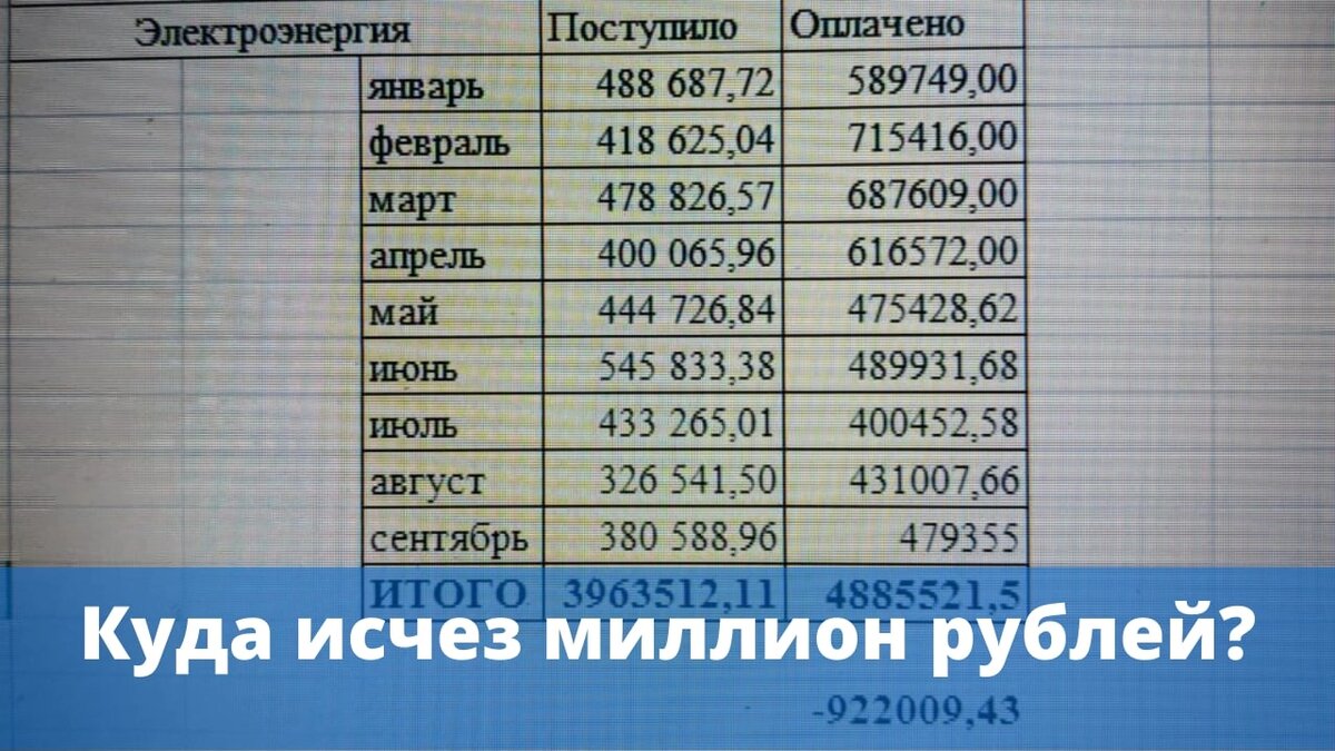 Почему мы так часто останавливаемся на вопросах связанных с электроэнергетикой в #СНТ Потому что это финансовая дыра, которую первым делом надо латать, для сохранения денег. К нам обратилось садоводство и спрашивают с таблицей: - куда пропал их почти миллион рублей? Конечно хотелось бы больше вводных иметь, но судя по нашему опыту это частая проблема многих СНТ. Причины которые приводят к такому результату. 1. Воровство электроэнергии. 2. Потери. 3. Перекосы по фазам. 4. Несвоевременная сдача оплаты за электроэнергию. 5. Отсутствие взыскания с должников. Как решить? 1. Установить счётчики на опоры 2. Передать сети сетевой компании, либо модернизировать их с целью снижения потерь. 3. Перераспределить равномерно нагрузку по фазам 4. Взять на должность контроллера, который подобно "коллектору" будет следить за верной передачей показаний и напоминать назойливо и постоянно о своевременной оплате. 5. Взыскание с должников финансовых средств. А есть ли ещё способ? Да. Заключить прямые