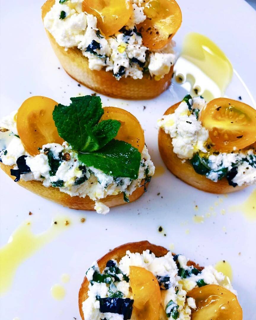 Обжарить хлеб на оливковом масле. Смешать сыр, нарезанный мелко базилик. Намазать, украсить черри и сбрызнуть оливковым маслом. Приятного аппетита 😋