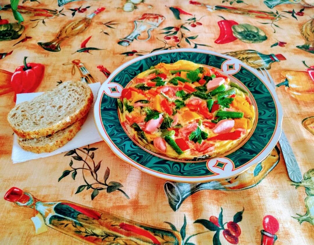 #23февраля Омлет в микроволновке — это полноценный завтрак, который одинаково хорошо впишется как в ежедневный рацион взрослого, так и ребенка. Ешьте его горячим, дополнив по желанию салатом из свежих или обработанных паром овощей. Просто, быстро, вкусно и полезно! Ингредиенты: Яйцо, сосиска, Помидор, Молоко, Тыква, Перец болгарский, Фасоль зеленая, Масло сливочное для смазывания формы;, Соль, перец , Сельдерей листовой (у меня замороженный) Способ приготовления: Помидорки и перец, промойте теплой проточной водой и обсушите полотенцами. Перец очистите от семян. Нарежьте овощи не большими дольками или соломкой. Выложите в миску. Сосиску нарезать полукружками. Вбейте яйца с солью. Когда они хорошо размешаются, добавьте их в подготовленные овощи и сосиску. В самом конце влейте нужное количество молока и вновь все очень тщательно перемешайте. Выложите в смазанную форму для запекания. Добавьте листья сельдерея и петрушки сверху. Поставьте форму с омлетом в микроволновку на 5 минут на полную