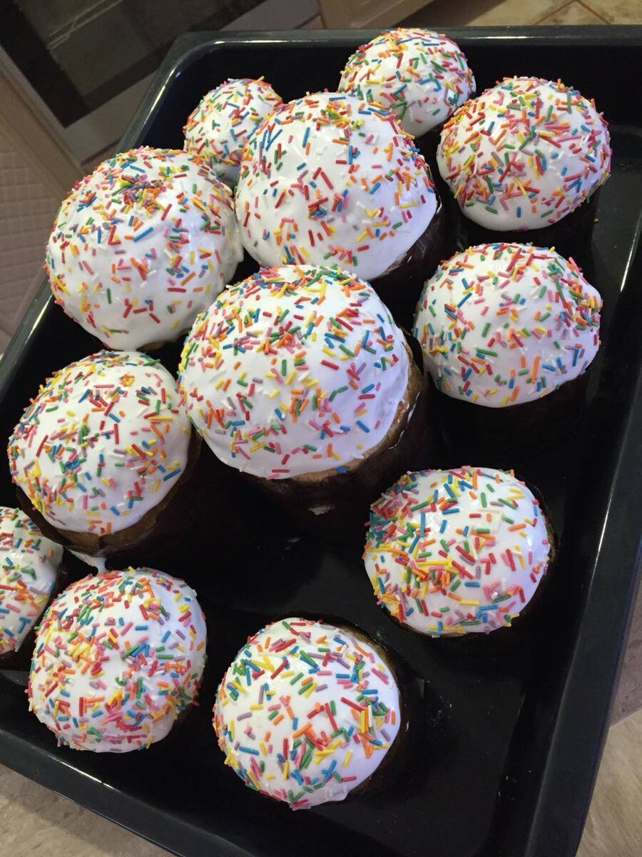 Всегда на Пасху стараюсь печь куличи сама, получаются очень вкусные, плотные и уж точно лучше покупных 😍❤. #кулич #пасха #праздник #пасхальныйкулич Ингредиенты: Тесто, молока, сливочного масла, яйца, ст.л сахара, соли, сухих дрожжей, Мука, Изюм, цукаты, Растительное масло, для смазывания рук, Посыпка, Глазурь, яичных белка, сахарная пудра Способ приготовления: В кастрюлю вылить молоко и немного подогреть, чтобы было тёплое, но не горячее. Добавить в него соль, сахар, сливочное масло и всё перемешать, чтобы масло растаяло. Далее добавить слегка взбитые яйца. Дрожжи смешать со 100 г муки и добавить к молоку. Постепенно начинаем добавлять просеянную муку и замешивать тесто. В конце добавляем изюм и цукаты. Тесто сильно мукой не забиваем. Тесто может липнуть, для этого руки смазываем растительным маслом и оставляем тесто подниматься. Как только тесто подошло, обминаем его и оставляем подняться ещё раз. На третий раз обминаем и раскладываем по формочкам, как только подошло в формочках, ста