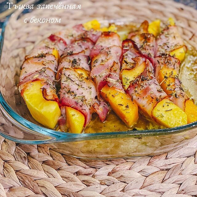 Честно говоря, тыкву я не очень люблю)) кроме крем-супа. Но тыква запечённая в беконе- это просто