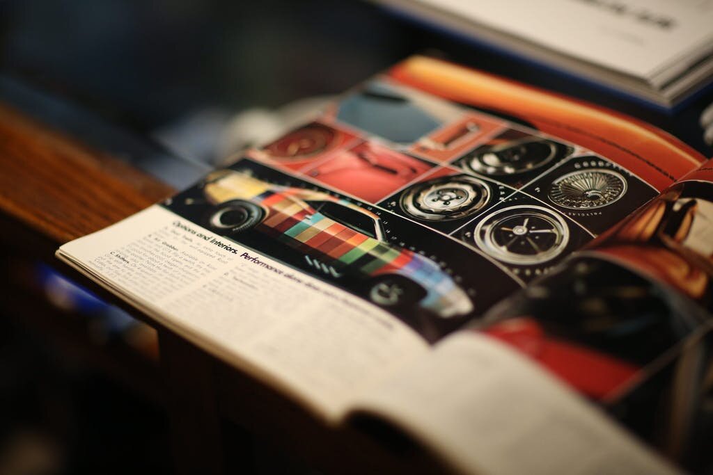 В начале ХХ века Генри Форд, стремясь к максимальному удешевлению производства, начал красить кузова модели T исключительно в чёрный цвет. В маркетинговых целях родилась крылатая фраза: "Вы можете купить автомобиль любого цвета, при условии, что он чёрный!". В последующие годы, особенно в богатые послевоенные (в определенной стране!) улицы городов раскрасили яркие автомобили множества цветов и оттенков, даже отечественные Москвичи, Лады и Волги красились в жизнерадостные цвета. Ну а в начале XXI века маятник истории качнулся в обратную сторону и современную цветовую палитру автомобилей можно охарактеризовать как "Пятьдесят оттенков серого"... Но энтузиасты помнят другие времена и один коллекционер из США решил воспроизвести рекламную брошюру 1970 года, предлагавшую покупателям Plymouth Cuda 25 цветов кузова 😀. Реклама Plymouth говорила, что "суперкаром автомобиль делает не только мощность"! На одном листе брошюры были представлены варианты колесных дисков, рычаг КПП в форме оружейной