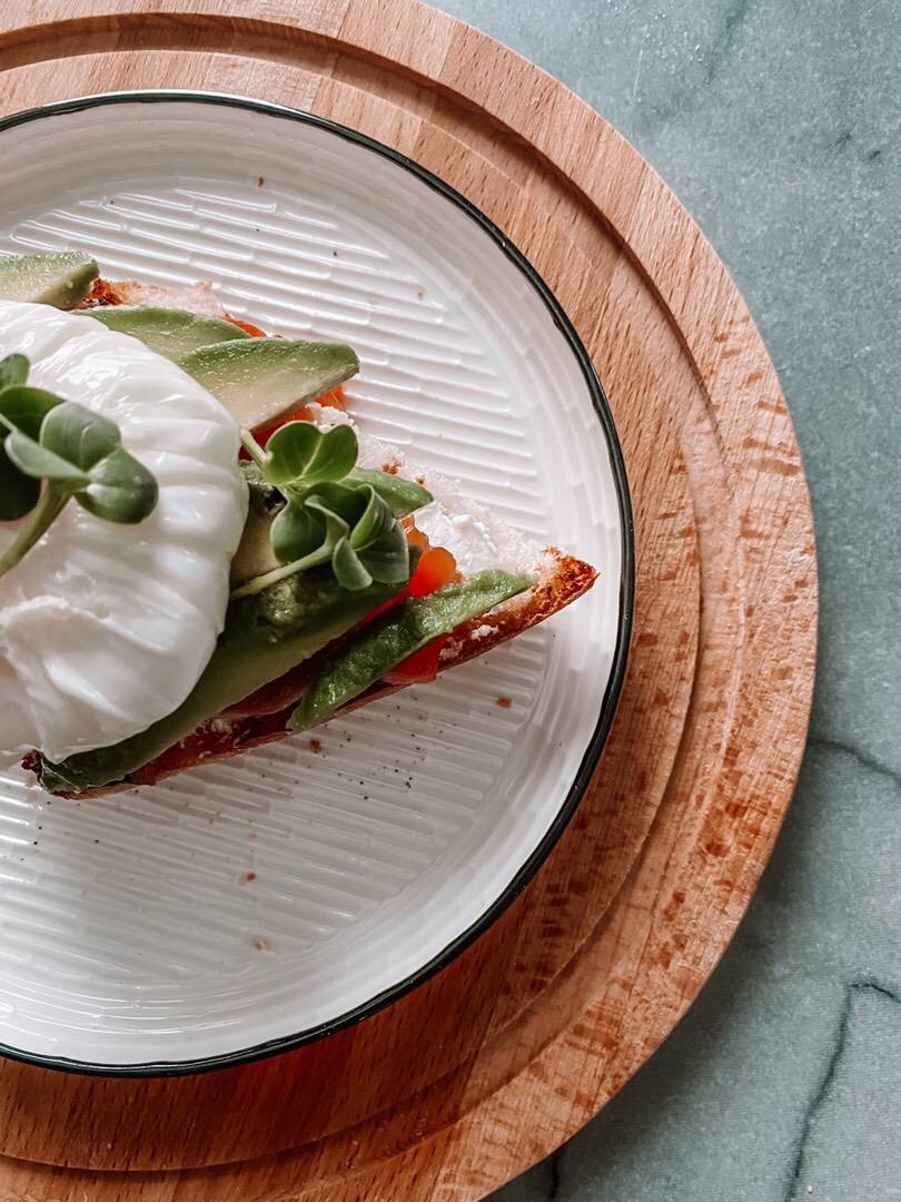 Вдохновляюсь всем что вокруг, люблю простые и красивые блюда Ингредиенты: Багет, Слабосоленая красная рыба (предпочтительно форель), Авокадо, Творожный сыр, Яйцо, Оливковое масло, Зелень Способ приготовления: Пищевую плёнку смазать оливковым маслом, разбить туда яйцо, не повредив его. Закрутить пищевую плёнку, чтобы внутрь не попала вода. В кипящую воду опустить яйцо и варить 3 минуты, затем выключить огонь и оставить ещё на 1 минуту. Вытащить Отрезать багет примерно 10 см длинной, разрезать вдоль и обжарить на сухой сковороде обе половины. Намазать одну половину багета творожным сыром, выложить слой тонко нарезанной рыбы и авокадо. Сверху выложить яйцо-пашот и при желании зелень, накрыть вторым тостом. Приятного аппетита!