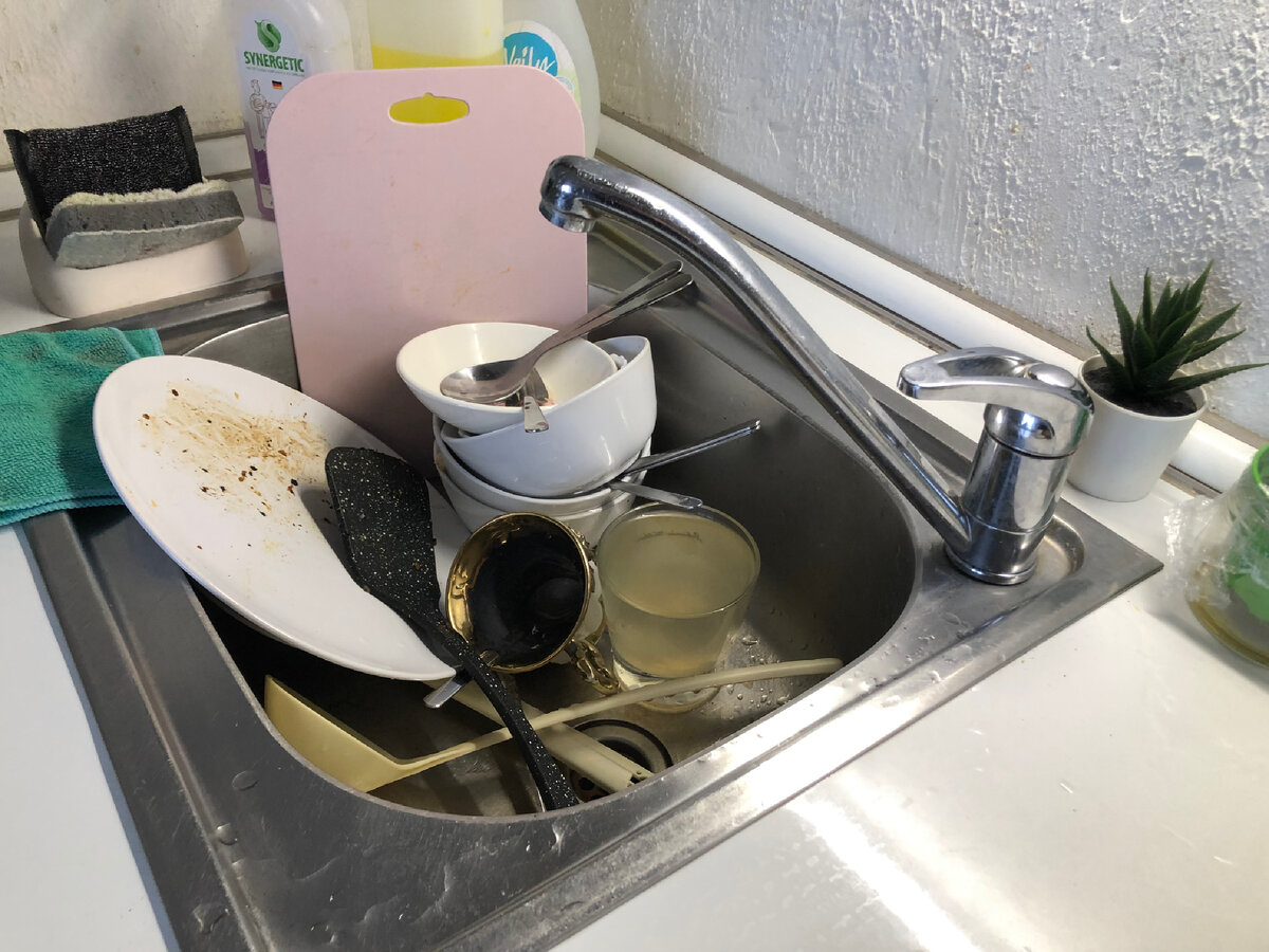 Несмотря на все кажущиеся плюсы от наличия в доме посудомойки, минусов я вижу намного больше. У нас небольшая семья, и обычно в раковине находится не больше двух-трёх тарелок, ложки, сковородки, и несколько контейнеров для еды. А машинка предназначена как раз для большого количества посуды. Я уже не говорю про кастрюли, которых можно положить всего лишь 2-3 штуки, ведь больше не влезет. Вот и получается что тарелок мало, крупная посуда не влезает, и запускаешь полупустую посудомойку. В раковине ещё остались большие салатники и их уже придётся домывать руками. Так +, зачем тогда мне нужна эта помощница на кухне? А ещё часто приходится перекладывать лежащую там грязную посуду, чтобы влезло побольше. Особенно это не понравится брезгливым людям вроде меня, ведь за то время пока в посудомойке накопиться большое количество грязной посуды, на поверхности тарелок уже появится "новая жизнь" в виде плесени. Фу. А ещё перед тем как положить посуду в машинку, всё равно нужно смыть с неё ост