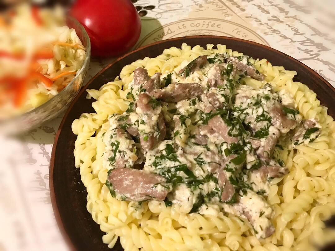 Из филе бедра индейки блюда получаются намного вкуснее и сочнее, чем из филе грудки индейки 😉 За рецепт и вдохновение благодарю автора сайта @Stanislavna С учетом вкусов семьи я добавила свежую зелень Ингредиенты: филе бедра индейки, репчатого лука, чеснока, сыра - который хорошо плавится - в оригинальном рецепте- сыр моцарелла, сливок 20%, пшеничной муки, Соль, чёрный молотый перец , Растительное масло для жарки, Свежий укроп и кинза Способ приготовления: Филе бедра индейки нарезаем полосками. В сковороде разогреваем растительное масло, выкладываем нарезанный четверть кольцами репчатый лук и измельчённый чеснок- пассеруем 2-3 минуты на умеренно среднем огне. Выкладываем в сковороду идейку, солим, перчим по вкусу- прибавляем огонь и обжариваем 4-5 минут до легкого золотистого цвета. Сливки смешиваем с мукой, вливаем в сковороду, выкладываем натертый сыр, добавляем мелко нарезанную зелень, накрываем крышкой и томим на маленьком огне 15-20 минут. Падаем с любимым гарниром. Приятного апп