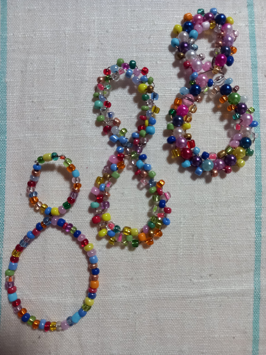 Вот такие восьмерки мы делаем с детьми 6 лет в саду.Как обычно, используем бисер 0.6мм , проволока 0.4мм и бабочки, либо цветочки.Дети и мамы в восторге.