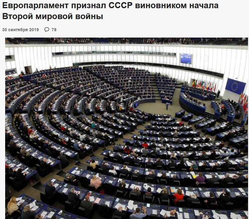 Тогда они приняли резолюцию, которая называлась - вы не поверите - "О важности европейской памяти для будущего Европы". И рассказывалось в ней о том, что два тоталитарных режима решили поделить мир, поэтому затеяли бойню. А готовили документ наши заклятые друзья - бывшие прибалтийские республики и Польша.
