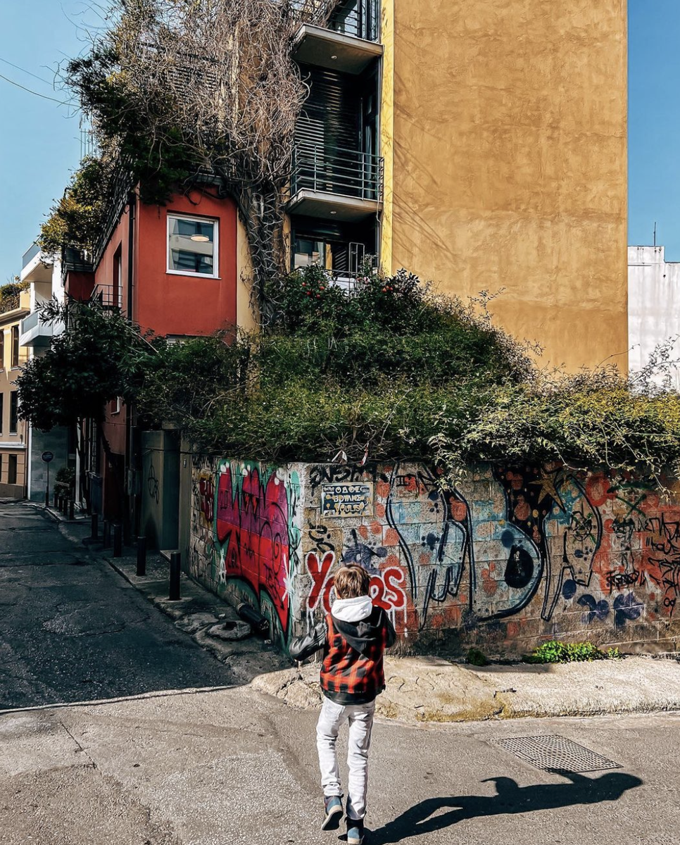 Ногами. По городу. С бездомными, с витринами магазинов, с кафе и барами, с цветами в кадках, с собачьими какашками, попрошайками, граффити и киосками с газетами.