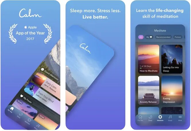 Приложение, как и следует из названия, нацелено на успокоение. Внутри для этого есть множество инструментов: и короткие медитации, позволяющие сосредоточиться на ощущениях в моменте, и треки со звуками природы и расслабляющей музыкой, и дыхательные упражнения, и добрые истории перед сном (правда, все на английском языке). Кстати, у Calm, кроме приложения, есть еще и сайт, который позволит сделать успокаивающий перерыв посреди рабочего дня.