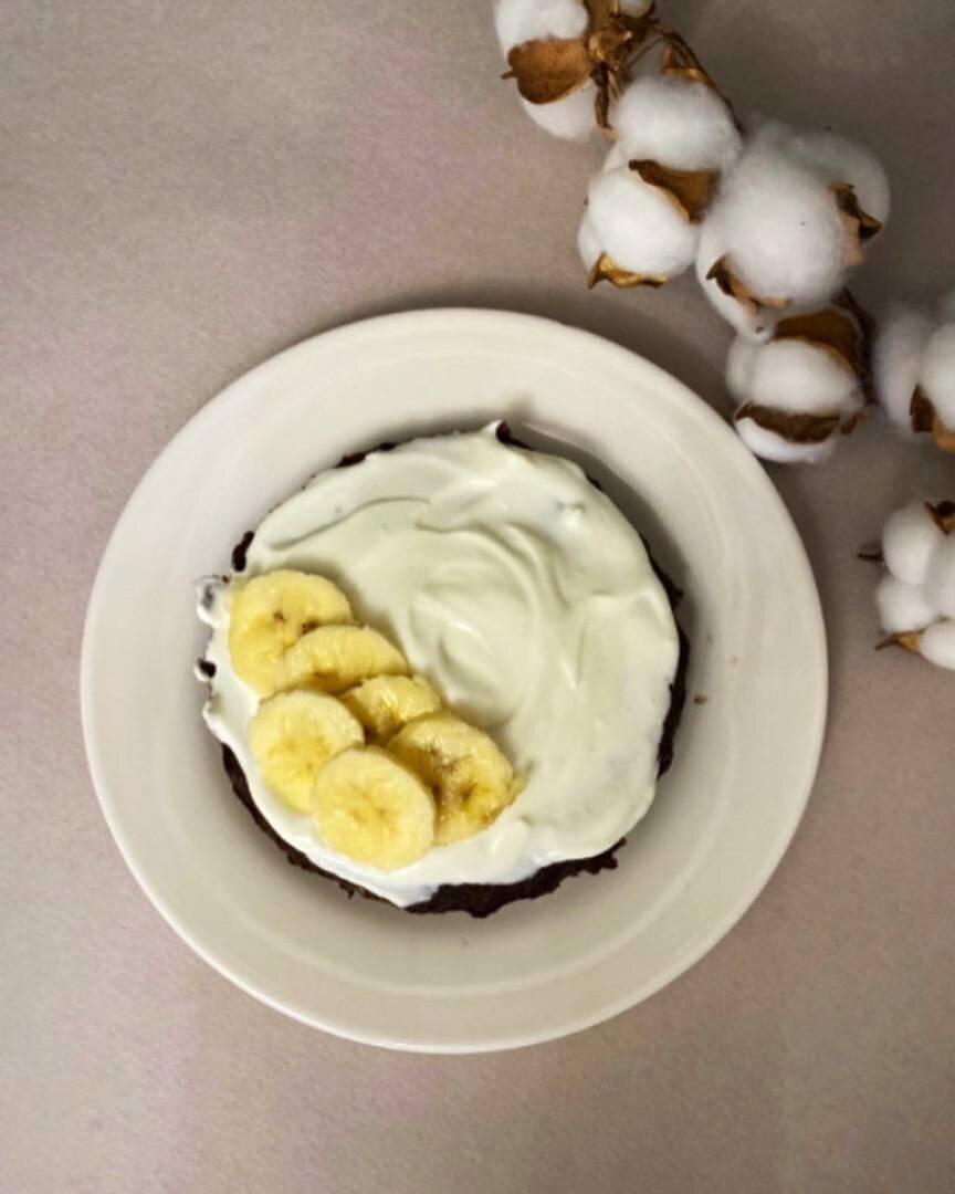 Ингредиенты: банан, яйцо, какао, разрыхлитель, мед, Йогурт без добавок