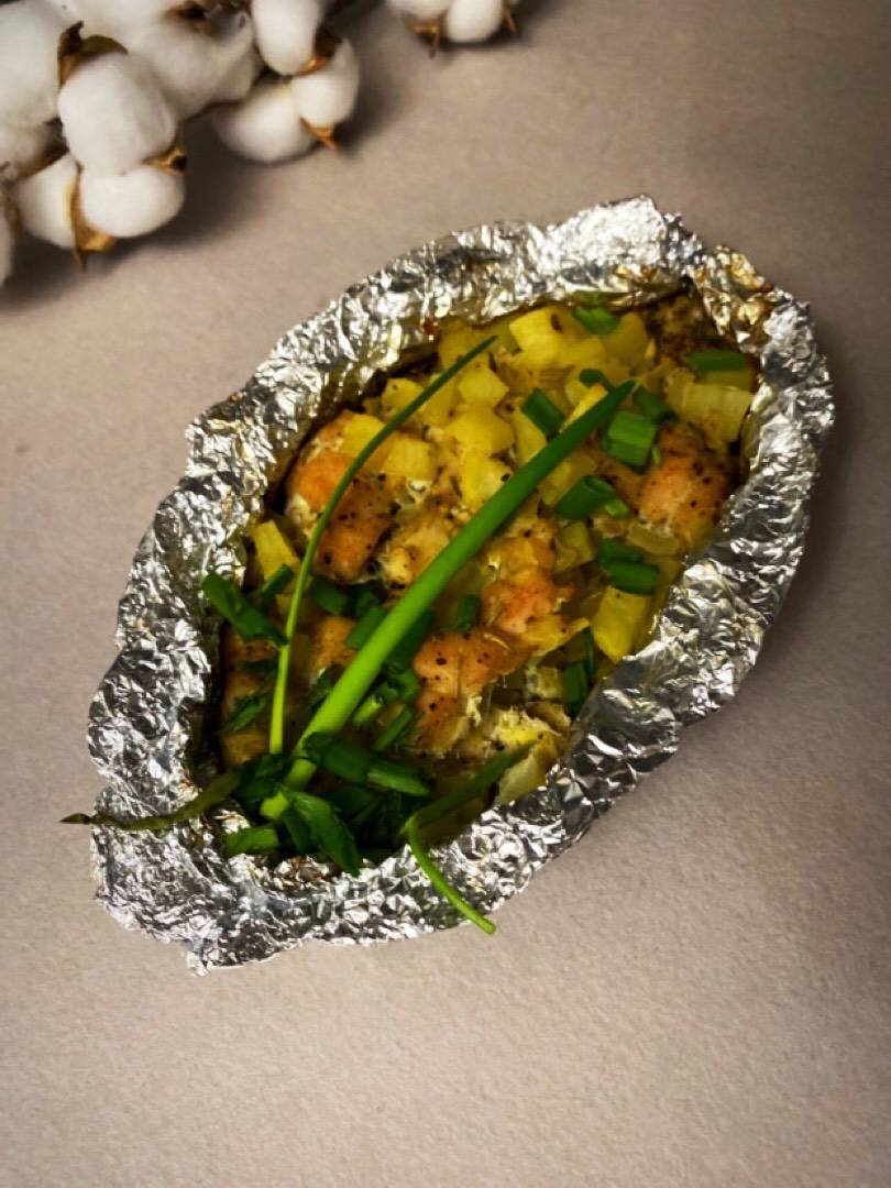 Перемешиваем, выкладываем на фольгу.