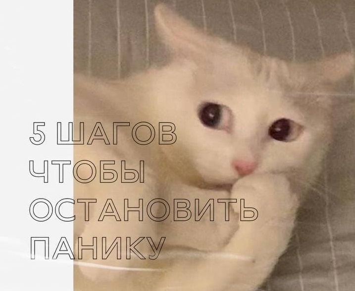 У вас паника? Как справиться? 1. Остановитесь\замрите. Вам нужно обездвижить себя. 2. Посмотрите вокруг. Вам нужно посмотреть по сторонам, будто бы вы внезапно телепортировали в новое место. Какое оно? Цвета, запахи температура? 3. Осознайте. Что сейчас чувствует ваше тело? Что именно вы чувствуете и почему? (не абстрактно, а конкретно). Имеете право на любые мысли чувства. 4. Задайте себе вопрос, чего вы хотите прямо сейчас? (краткий ответ). Что вы можете сделать, чтобы это получить? (вам нужен ваш способ помочь себе) 5. Не откладывая сделайте то, что поможет вам получить желаемое. Например, вы находитесь в подвале, слышите взрывы. Вам нужно замереть, после посмотреть по-новому на подвал,изучить других людей. Дальше сконцентрироваться на своем тебе и чувствах. Предположим, вы испытываете страх за себя и близких. Как вы можете помочь себе справиться со страхом? Возможно просто обнять себя, или попробовать поговорить о чувствах с рядом сидящим, или переключиться на полезную деятель