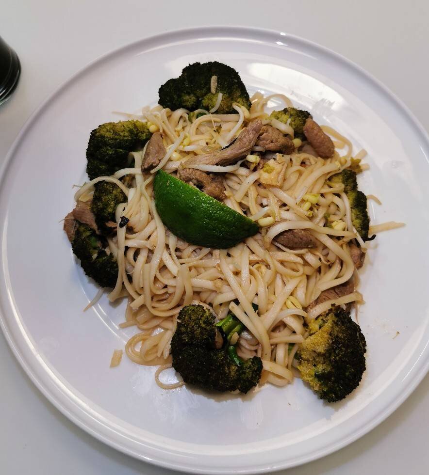 Ингредиенты: Филе индейки, Удон (можно рисовую Лапшу, но я не люблю её), Брокколи , Ростки Маша, Лук , Чеснок, Базилик, Яйцо, Соевый соус, Сахар тростниковый , Лимонный сок , Лайм, Раст масло Способ приготовления: Взболтать яйцо, пожарить в вок и убрать в отдельную тарелку. Пожарить лук, добавить чеснок. Обжарить индейку до готовности. Добавить брокколи и немного воды примерно 2 ст. ложки, готовим пару минут. Добавляем яйцо, Базилик, лимонного сока, соевого соуса. Предварительно варим удон 3-4 мин и добавляем в вок уже готовым. Все перемешиваем, добавляем ростки и готовим ещё 1 минутку. Подаём с лаймом.