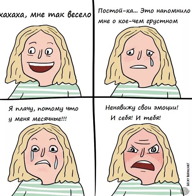 Люди не хотят испытывать эмоции, потому что они порождают боль. И кажется, что если запереть их глубоко внутри, станет легче. Но эмоциональный ком растёт и превращает вас из просто эмоционального человека, в тревожного невротика. Мы не умеем в первую очередь эмоции осознавать, затем, принимать, а затем, уметь с ними работать. Мы перехватываем на бегу бутерброд, занимаемся чем угодно, только не собой. Внутрь себя бывает страшно смотреть. Там может многое не понравится. Но если мы не будем этого делать, мы не сможем вырасти.
