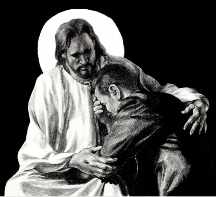 Только проснулась ото сна... Мне приснился кающийся грешник. Вся рубашка у него стала мокрая от слез.........