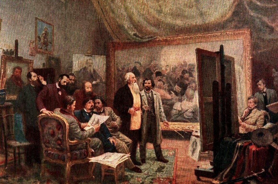 Самой большой новостью в живописи Санкт-Петербурга в 1871 году стала выставка художников-передвижников. Впервые мысль о передвижной выставке возникла в 1869 году, у художника Григория Мясоедова. Потом к нему присоединился его коллега Перов. Но какое-то время это оставалось только идеей. Мясоедов и Перов обращались со своей задумкой к Артели художников, но поддержки там они не получили, ни от кого, кроме Крамского. Впоследствии, и другие художники постепенно начали примыкать к идее передвижной выставки, и в результате этого союза, в конце 1871 года, открылась первая передвижная выставка. Главными целями этой выставки были: предоставление возможности людям жившим, в небольших городах ближе познакомится с живописью, а так же помочь мастерам принимавшим участие в передвижной выставке стать узнаваемыми и продать свои художества. В выставке, состоявшейся в Санкт-Петербурге, принимали участие 16 художников: Иван Крамской, Григорий Мясоедов, Михаил Константинович Клодт, Иван Шишкин, Алексей Са