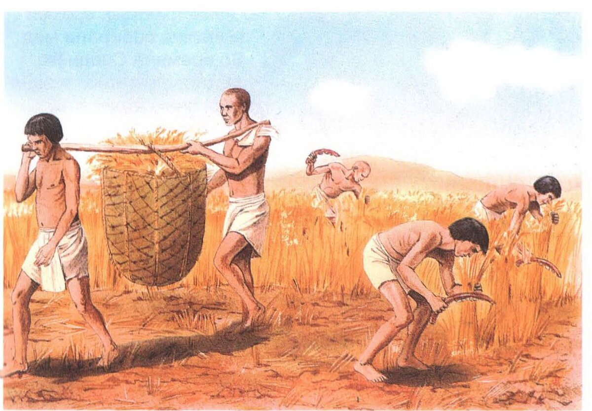 Египетское трудовое эксплуатируемое население, которое, как пишет Берлев, называлось "царские хемуу", то есть царские люди, слуги, что-то вроде наших холопов. До изобретения денежного обмена, то есть примерно до Среднего царства, они получали продуктовый паёк в качестве оплаты своей работы. Чуть позже паёк превратился в долю от выращиваемого зерна - для крестьян и в какое-то подобное снабжение - для ремесленников.
