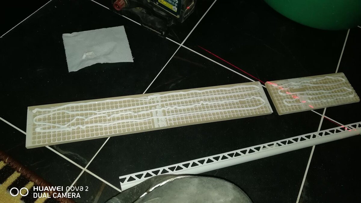 Практически финальный аккорд моего ремонта в санузле (за исключением "повесить крючки и занавеску") - это изготовление экрана под ванну. Мне хотелось соблюсти общую стилистику помещения. Сначала было желание поставить точно такие же двери-купе с тонкой системой Rauff, как в шкафу напротив. Благо, что остатков комплектующих и заполнения как раз хватало на пару небольших фасадиков. Но меня остановил тот факт, что при использовании этой системы доступно к использованию менее 50% проема (остальное закрывается дверью), а в это пространство тазики, которые запланированы для складирования под ванной, не пролезут. Откидной вверх фасад будет мешать, вниз - тоже. Остановился сначала на цельном распашном фасаде с опорой на пол (ролик). Потом в процессе размышлений, придумал сделать опорную "гармошку". На этой идее я и остановился. В качестве декора решил класть ту же плитку, что и на стенах. Во-первых, пришлось заужать пространство под ванной (комната получилась на расширение. Для этого была вкл