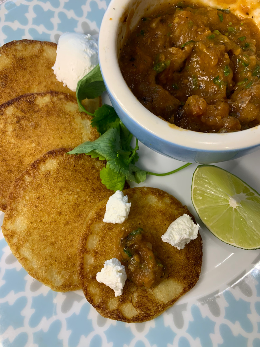 Врываюсь ярко🔥 Под звуки сальсы я врываюсь в эту масленичную неделю🎉 Сальса у меня не только звучит, но и делает так, что мой живот от голода уже не урчит😂 А все потому, что у меня сегодня кукурузные оладьи с острой сальсой🌶🔥 Беру 3 ст.л. кукурузной муки, 3 ст.л. пшеничной муки, 2 ч.л. сахара, 4 ст.л. кефира, 2 ст.л. молока, 1,5 ст.л. сливочного масла, яйцо, 1 ч.л. соды, 0,5 ч.л. соли, 200 гр сыра Фета и растительное масло. Для сальсы 4 помидора, половинку луковицы (лучше красной), острый 🌶 , долька чеснока, сок 1/2 лайма, 1 ч.л. оливкового масла, 1 ст.л. нарезанной кинзы. • Помидоры нарезаю четвертинками, лук полукольцами, чеснок и перец половинками (из перца лучше удалить семена☝️) Сгорая от страсти, я подаю тёплые оладьи с раскрошенным сыром Фета и сальсой🔥 #блины на масленицу #масленница #масленичная неделя #блинчики рецепт #оладьи #оладьи рецепт #простые рецепты #еда и рецепты #вкусная и полезная еда #готовим вкусно