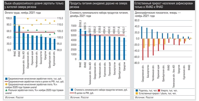 По итогам 11 месяцев прошлого года в регионе Урал и Западная Сибирь родилось 208,3 тыс. человек, умерло 337,3 тыс. человек, естественная убыль населения региона составила 129 тыс. человек, что на 50,5 тыс. человек больше, чем было годом ранее. В разрезе регионов по всем показателям первое место занимает Свердловская область. Естественная убыль населения зафиксирована во всех субъектах кроме ХМАО и ЯНАО, естественный прирост населения в них — 4,9 тыс. и 3,1 тыс. человек соответственно.
