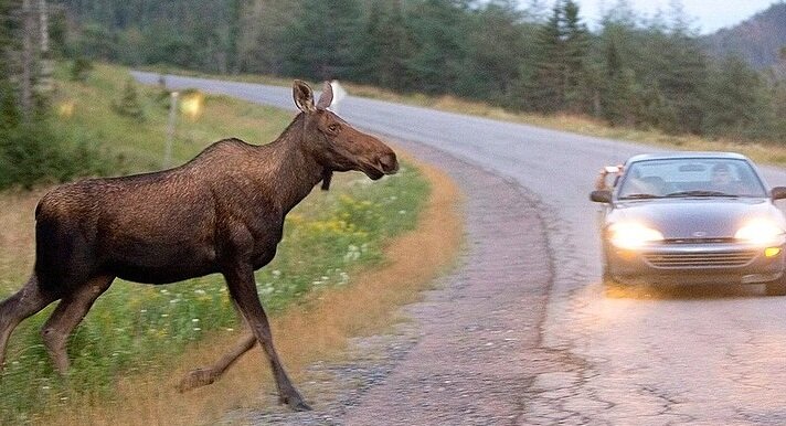 - Если животное большое, к примеру лось средних размеров или корова, то столкновение с таким животным на большой скорости, может стоит жизни для всех кто сидит в автомобиле. Поэтому если на встречку уйти не получается, то лучше попробовать снизить скорость и уйти на обочину, если обочина хорошая. При этом на обочину нужно уходить по возможности уже на минимальной скорости и не крутить резко рулем, чтобы не спровоцировать занос автомобиля;
