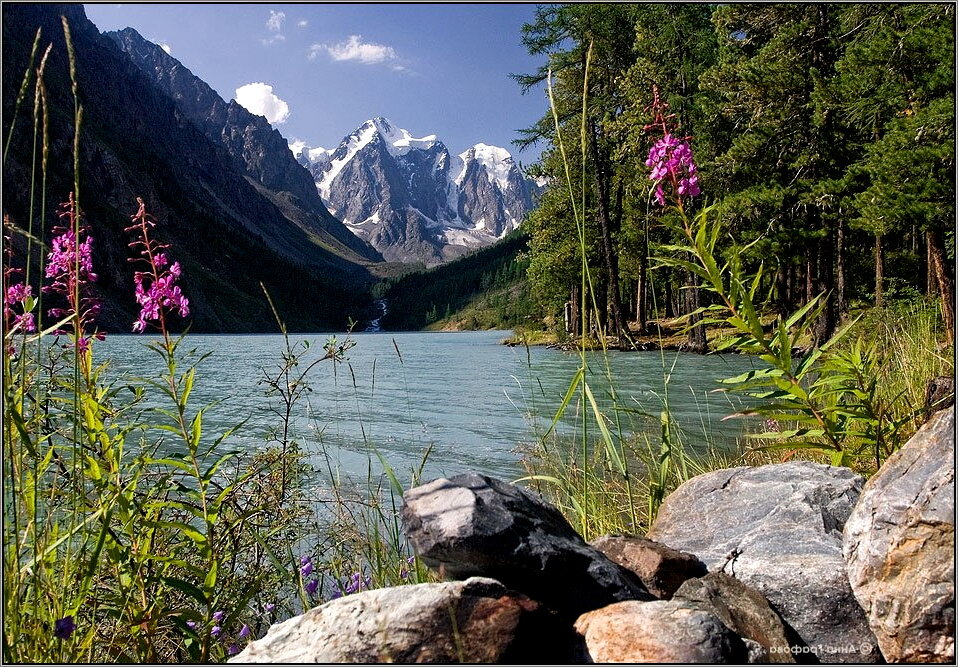 Цветение Иван-чая в Безымянной бухте озера Байкал